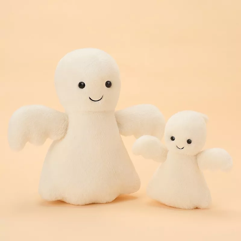 Legyünk őszinték: ez a Halloween Ghost Doll a cukiságról és a szórakozásról szól. Nem egy ijesztő szellem, mint a filmekben, hanem egy duci, bújós figura. Nagy, kerek szemei és kissé huncut arckifejezése mosolyra késztet, nem fél. Ennek a designnak a szépsége? Széles közönséget vonz! A gyerekek szeretik, a fiatalok szórakoztatónak tartják, és még a szülők is szívesen megveszik, így nem kell attól tartani, hogy túlságosan ijesztő lenne eladni.