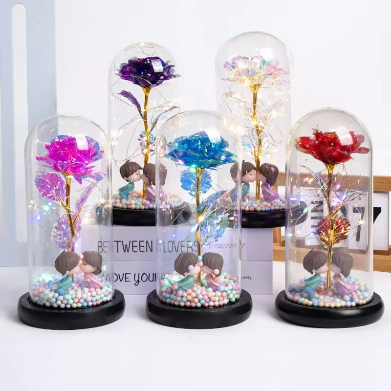 More importantly, the YSD factory offers customized Valentine's Day glass dome flowers, fully meeting the individual needs of buyers. Ha van saját márkája és szeretné megkülönböztetni termékét, az üvegkupolára rányomtathatjuk üzletének logóját vagy márkanevét, vagy egyedi üzenetet gravírozhatunk az alapra. Ha különböző vásárlói csoportok számára szeretne megkülönböztetett termékeket készíteni, például rajzfilmeket fiataloknak vagy aranyozott üvegkupolákat a felső kategóriás ügyfelek számára, akkor a dizájnt az Ön igényei szerint is személyre szabhatjuk. Az egyedi megrendelések rugalmas minimális rendelést tesznek lehetővé. Nem kell nagy mennyiséget elhelyeznie; kisebb próbák is lehetségesek. Ezenkívül a rövid átfutási idő azt jelenti, hogy nem fog lemaradni a Valentin-napi értékesítési szezonról, így egyedi termékhez juthat, és versenyképesebbé válhat a piacon.