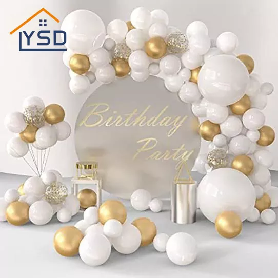 A White Wedding Balloon Arch egy abszolút csodálatos ballondekoráció, amely a hihetetlen YSD Balloon Factory márkából származik. A Fehér Esküvői Balloon Arch egy igazán különleges esküvői dekorációs ballon koszorú -készlet, amelyet nagyon izgatottak vagyunk az ügyfelekkel. A fehér esküvői léggömb ív fő teste gyönyörű fehér léggömbökből áll, valamint néhány lenyűgöző arany latex léggömbből. Az YSD nagyon sok léggömbláncot adott el, és professzionális fehér esküvői léggömb -gyártókká vált.